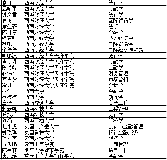 附件:遂宁市商业银行2016届校园招聘成都地区笔试复试名单