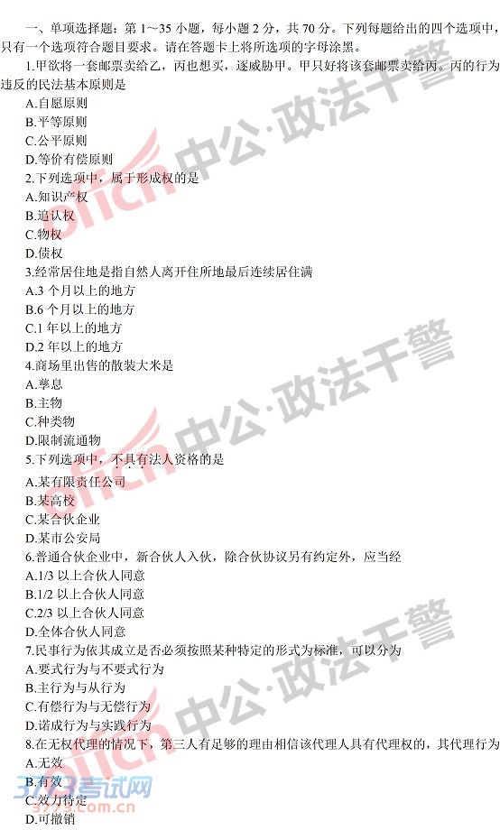 全国政法干警考试2013年文化综合客观题