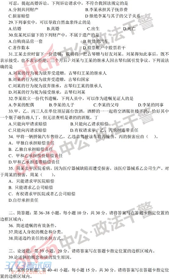 政法干警考试2012专业综合Ⅱ模拟题答案