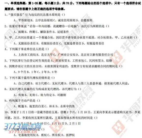 全国政法干警2013年考试民法债权题目之"最"