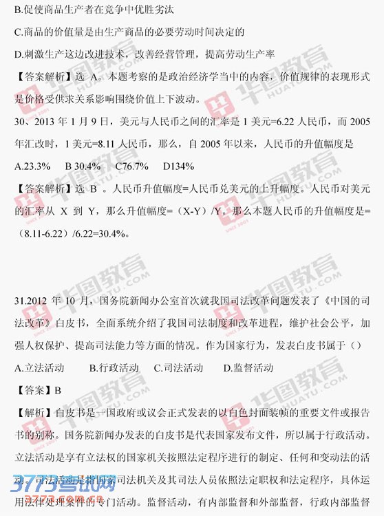 全国政法干警考试2013年文化综合客观题及解析