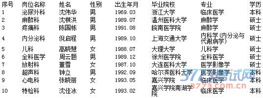 2015浙江嘉兴市第一医院拟录名单