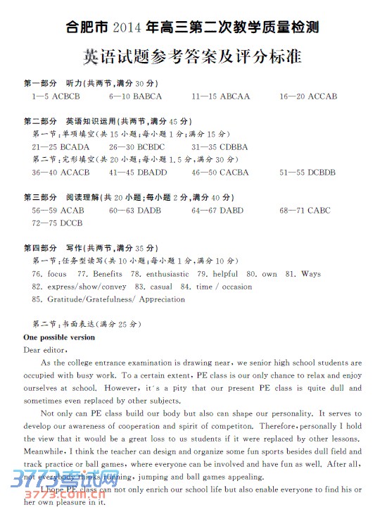 2014合肥二模英语答案发布