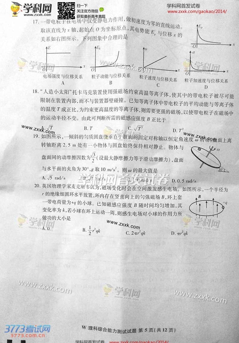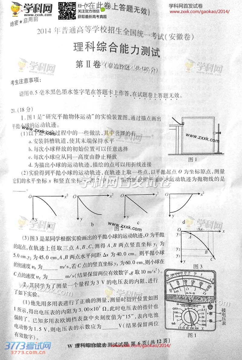 2014安徽高考理综试题试卷发布