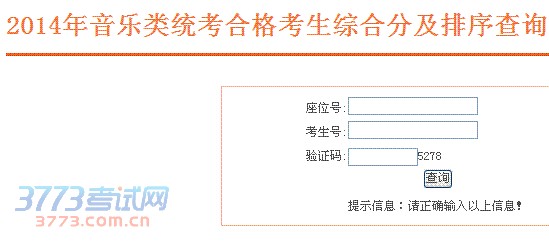 2014年音乐类统考合格考生综合分及排序查询 座位号:考生号:验证码:5278