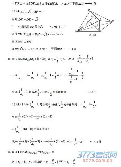 四边形 为平行四边形, ,高三数学(文)试题答案 第2页(共4页)
