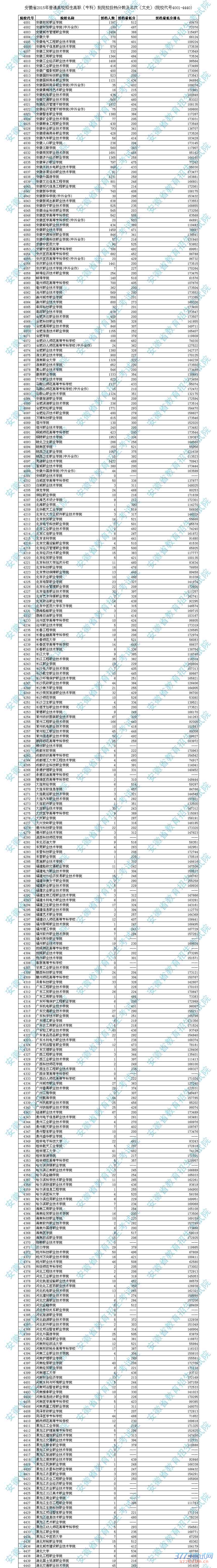 2015安徽高考专科投档分数线(文科院校代号4001-4440)