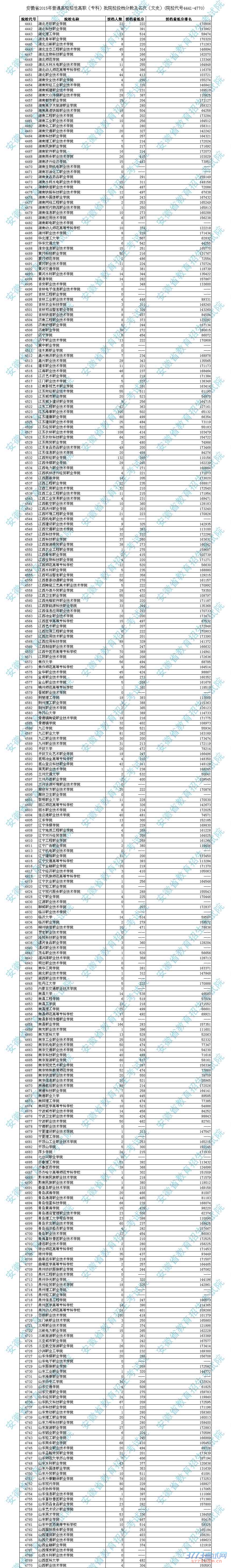 安徽省2015年普招高职(专科)投档分数及名次(文史)(院校代号4441-4770)