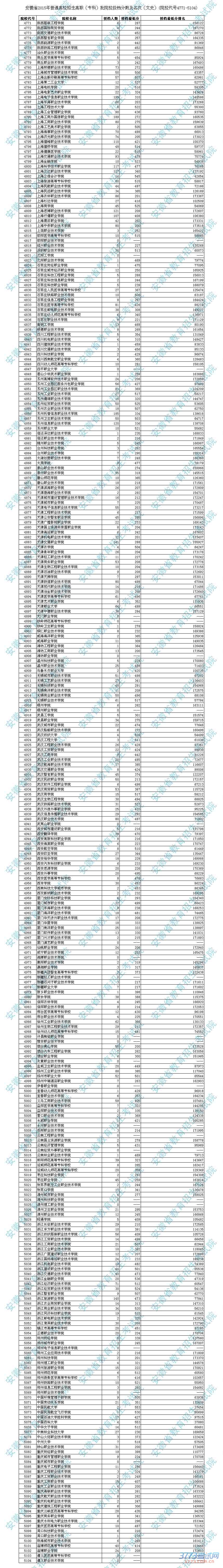 安徽省2015年普招高职(专科)投档分数及名次(文史)(院校代号4771-5104)