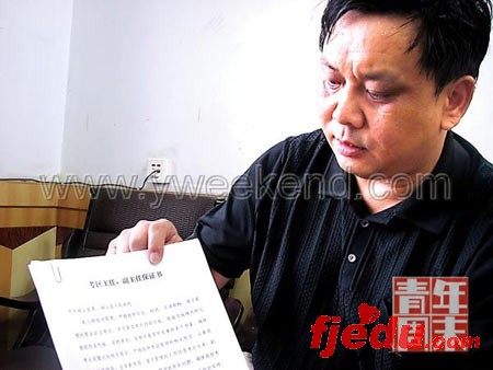 资料图片:面对记者,砀山县教育局局长拿出了一份《考区主任、副主任保证书》。(供图 谷岳飞)
