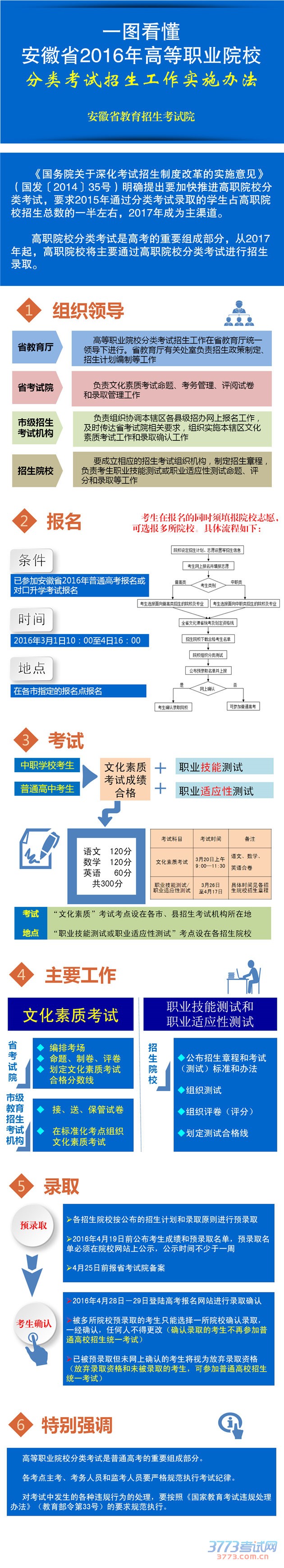 图解安徽省2016年高职院校分类考试招生工作实施办法
