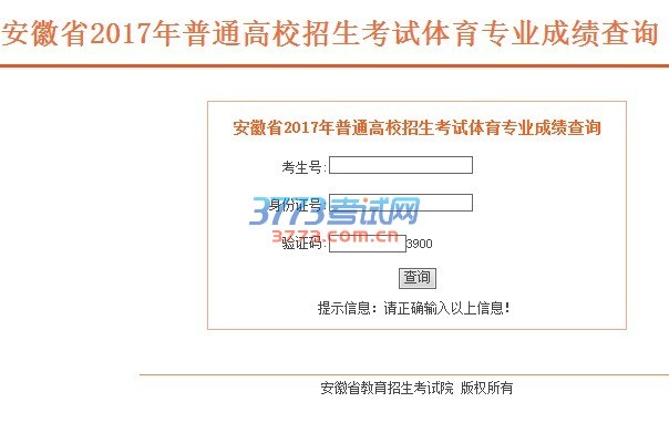 安徽省2017年普通高校招生考试体育专业成绩查询考生号:身份证号:验证码:3900