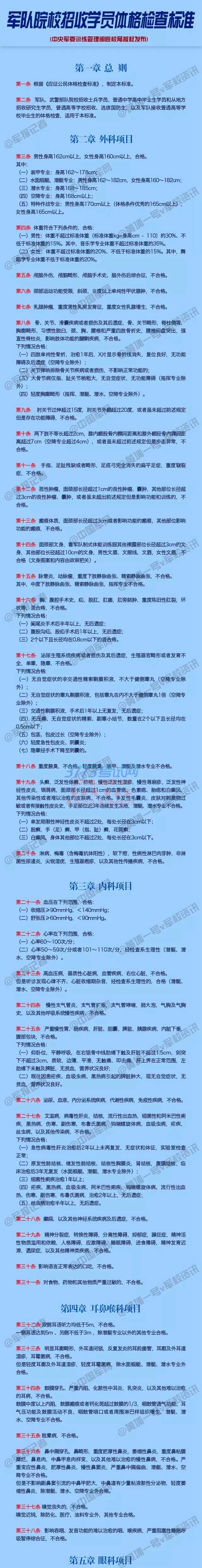 2018年高考临近,大量考生家长在黄埔一号后台留言,咨询今年高中生报考军校的体检标准。为满足大家的信息需求,本平台联系了军队招生主管部门。据了解,2018年军校招生体检标准与去年相比没有变化,但在体检结论使用上会有所调整,重点突出各军兵种主战专业对考生的体格要求。各院校不同招生专业的体检结论要求,后续会随2018年军校招生计划一道明确。有关军校招生体检的政策解读、注意事项、专家建议等,黄埔一号将陆续发布,敬请关注。