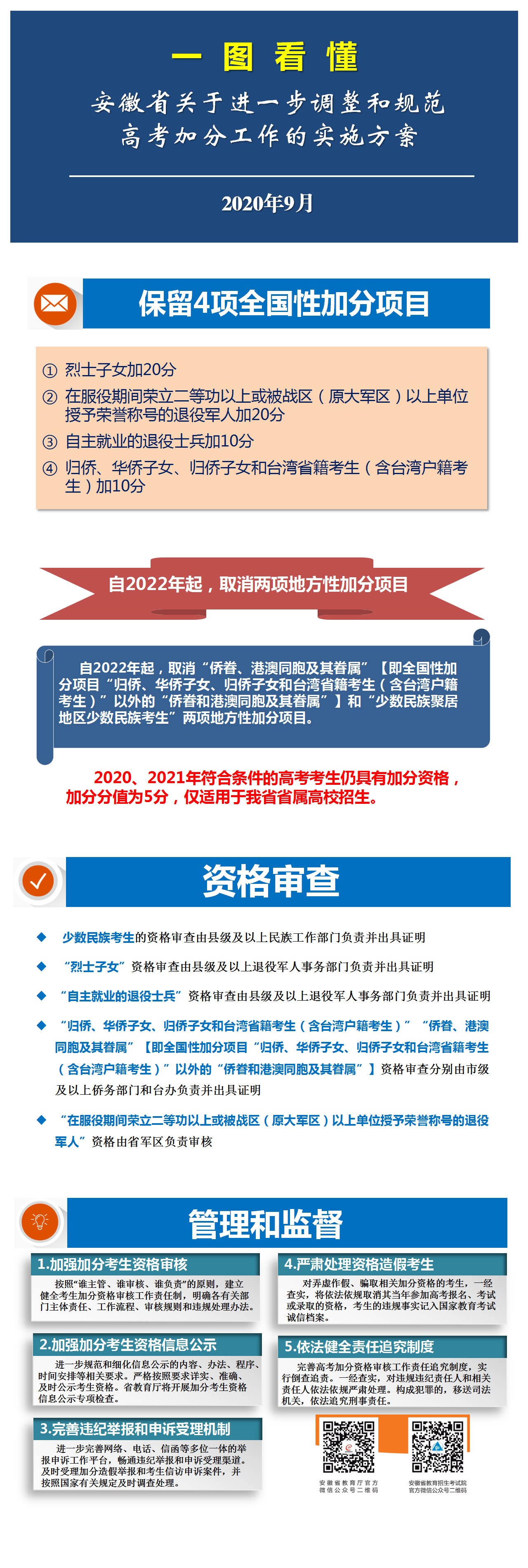 一图看懂《安徽省关于进一步调整和规范高考加分工作的实施方案》