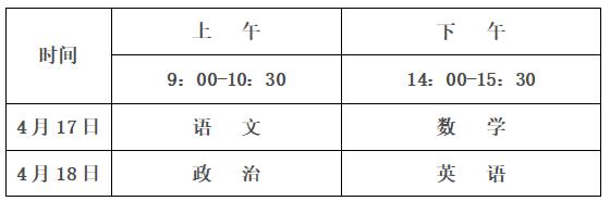 1.体育单招文化考试时间为2021年4月17-18日。考试科目为语文、数学、政治、英语四科,每科150分,总分600分。文化考试具体时间如下:
