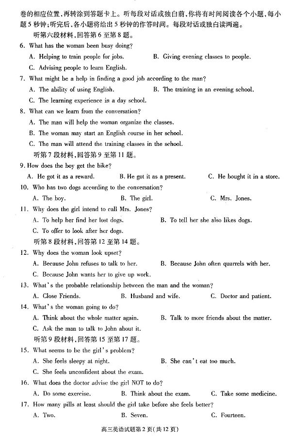 2009年合肥市三模语文试卷题及答案