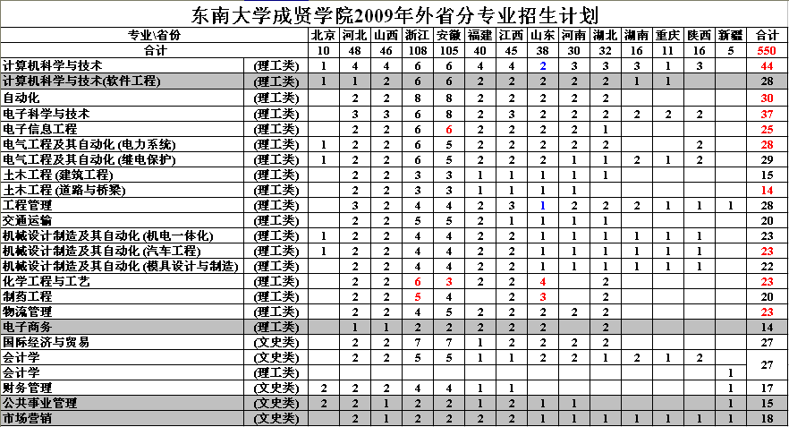 中国人民大学2009年安徽招生计划及2006-2008年安徽分专业