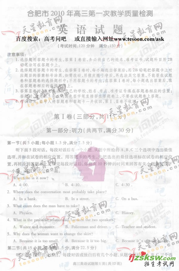 2010年合肥一模英语试题及答案请随时关注本站更新!!