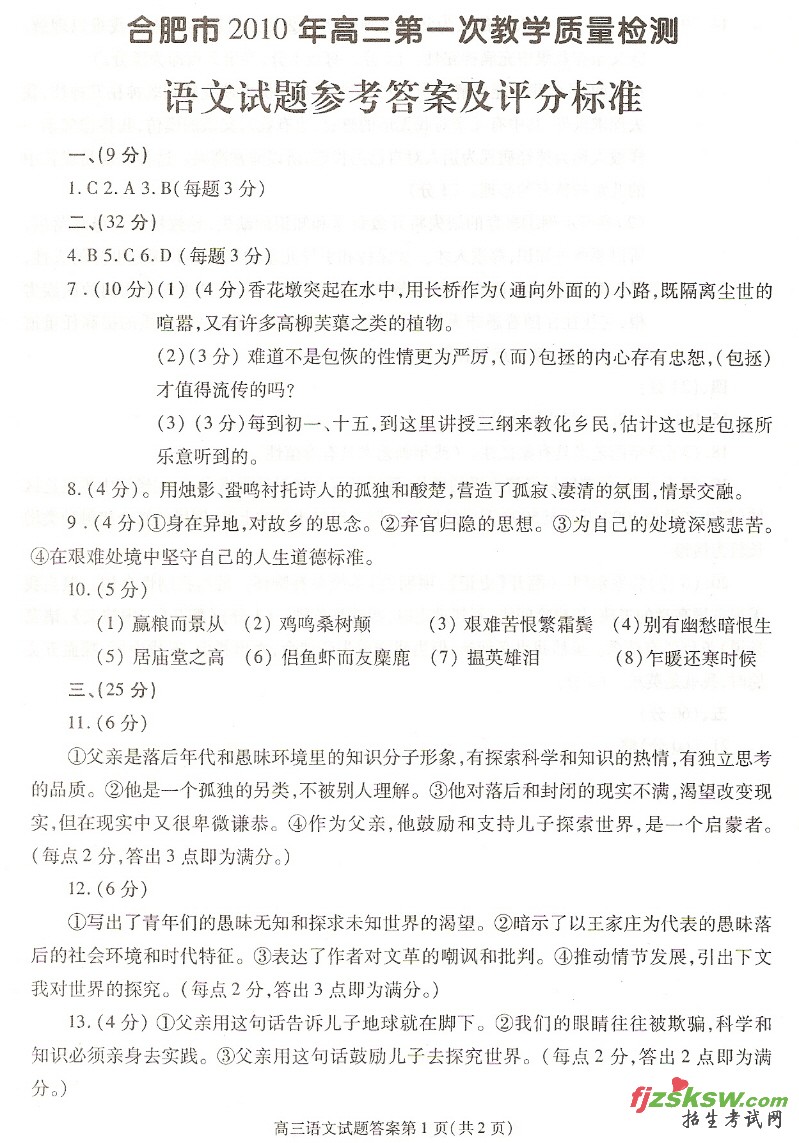 安徽省2010年第二批本科院校投档分数及排名(文史)