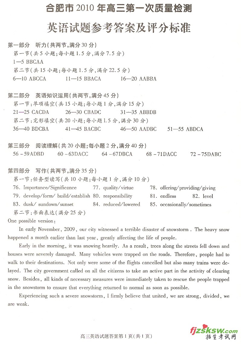安徽省2010年第二批本科院校投档分数及排名(文史)