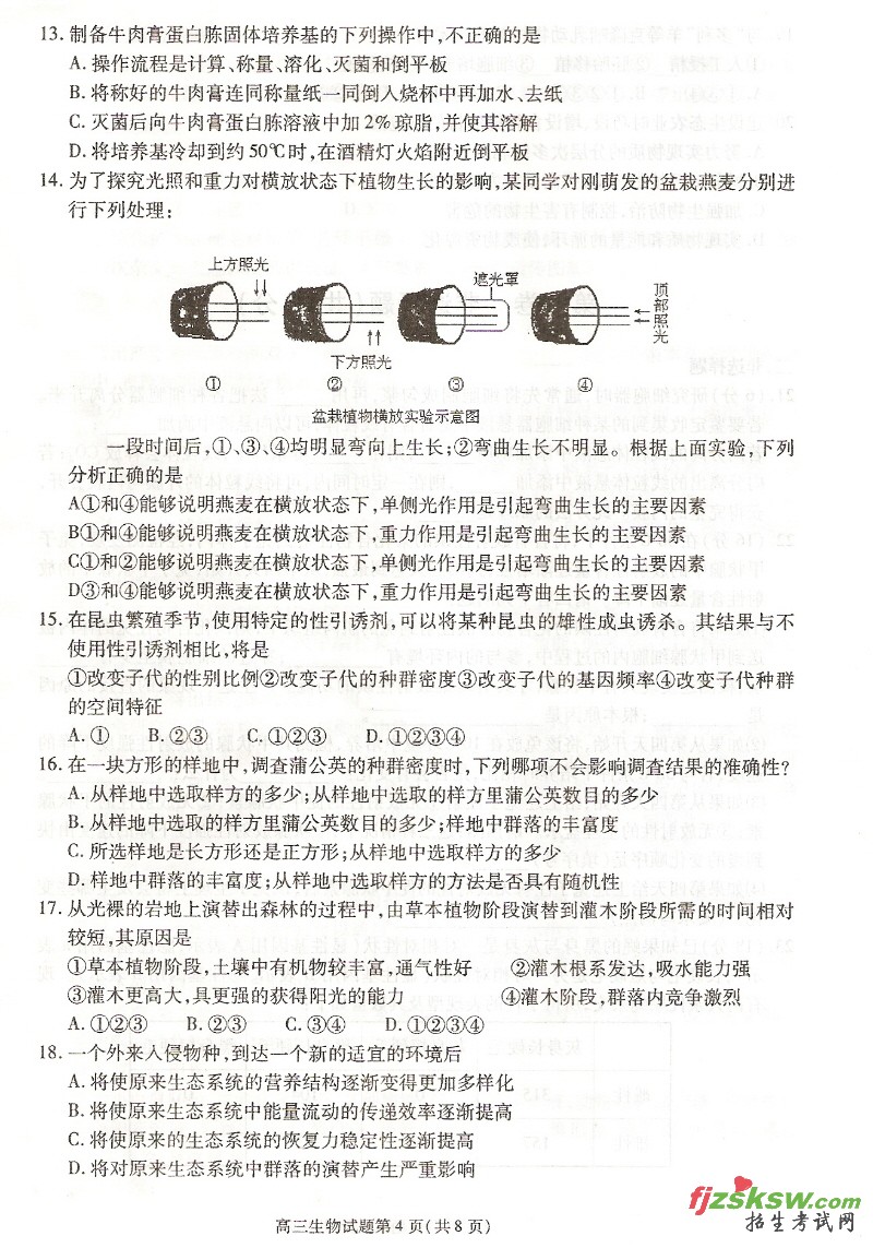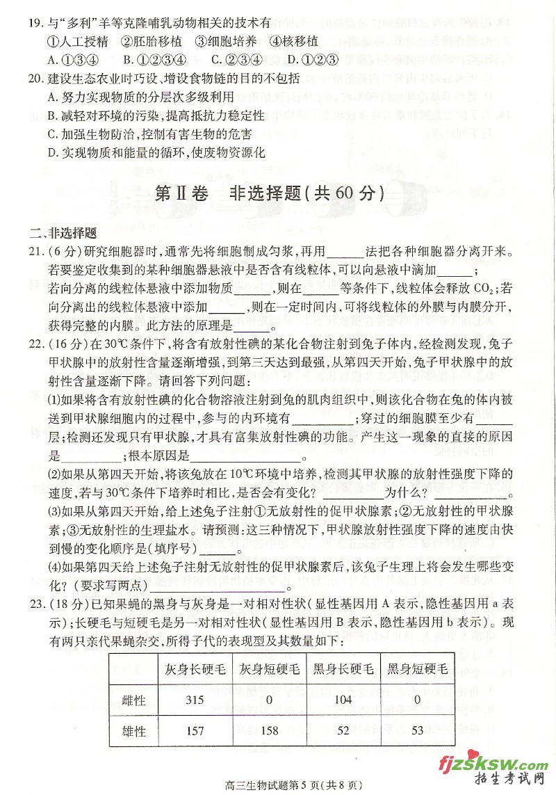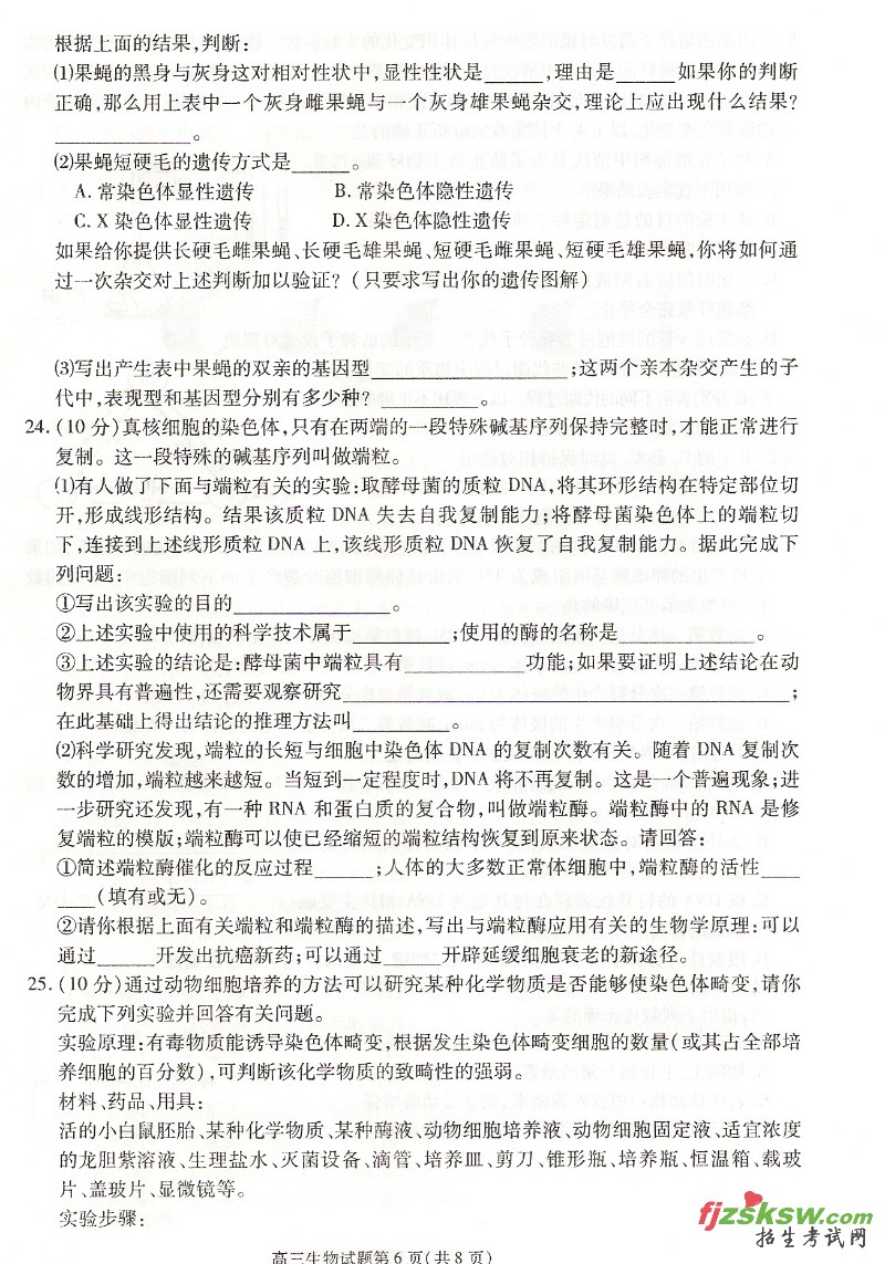 2010年安徽高考合肥一模生物试题卷