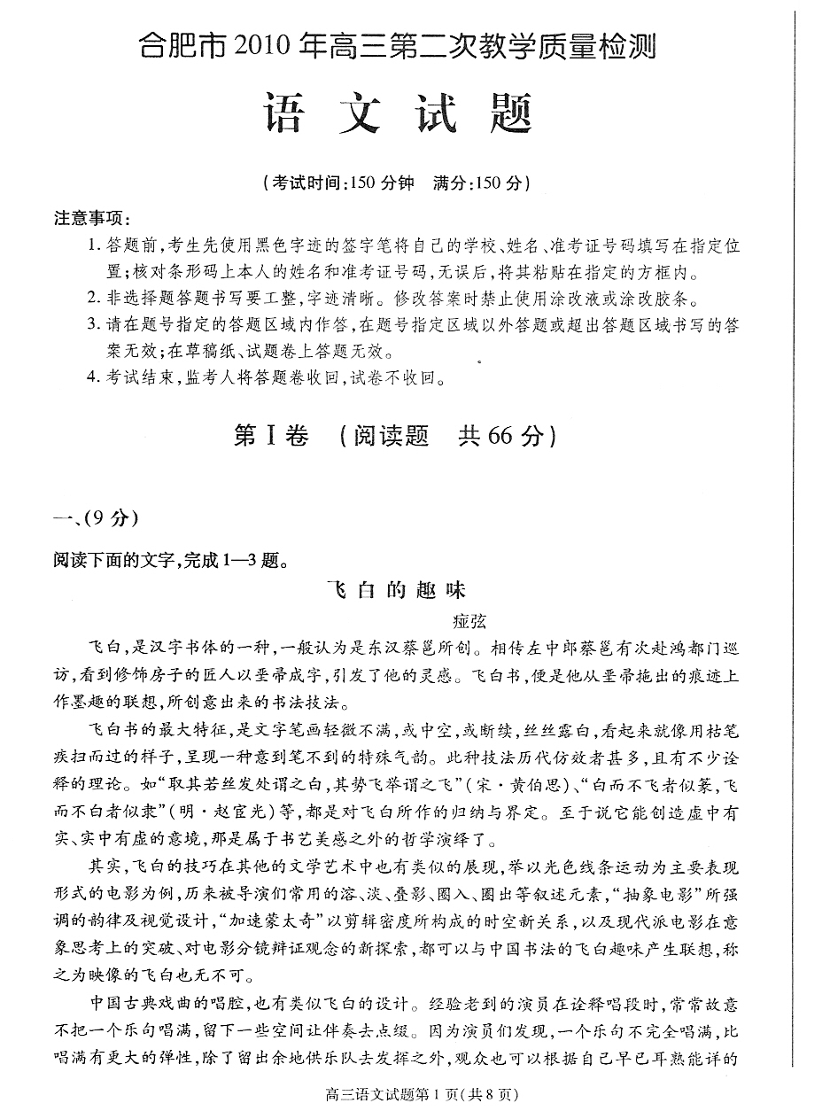合肥2010年高考二模语文试题