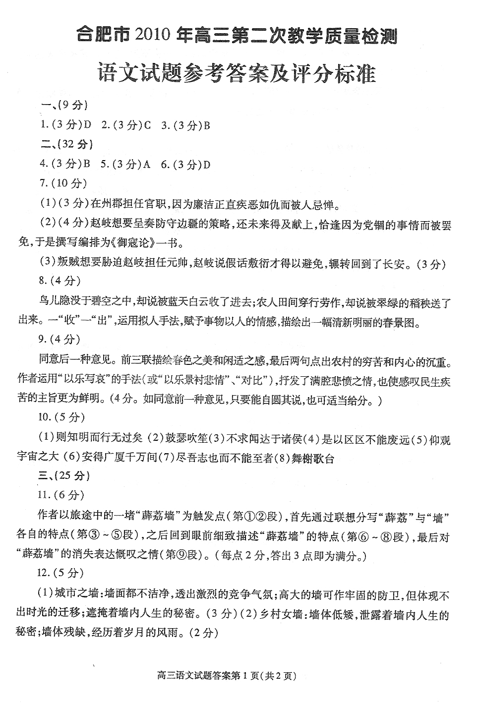 安徽省2010年第二批本科院校投档分数及排名(文史)
