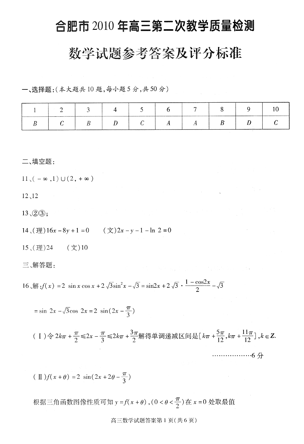 安徽省2010年高考二本院校投档分数及排名(理工科)