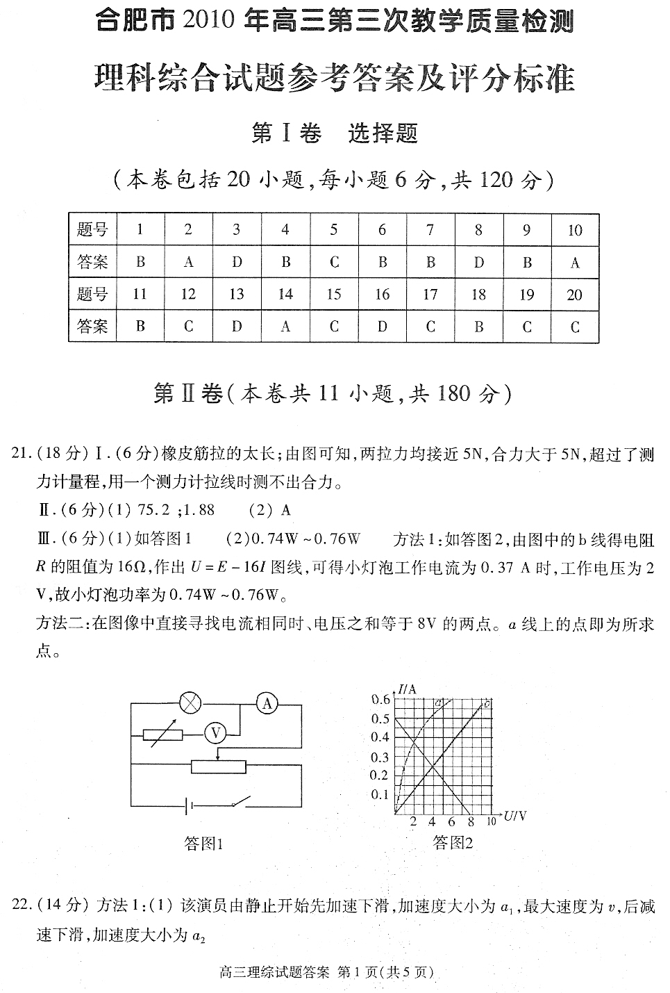 安徽省2010年高考二本院校投档分数及排名(理工科)