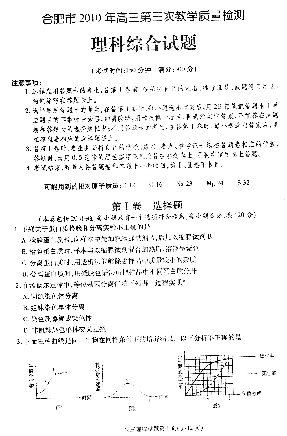 2010年合肥市高考三模理科综合试题