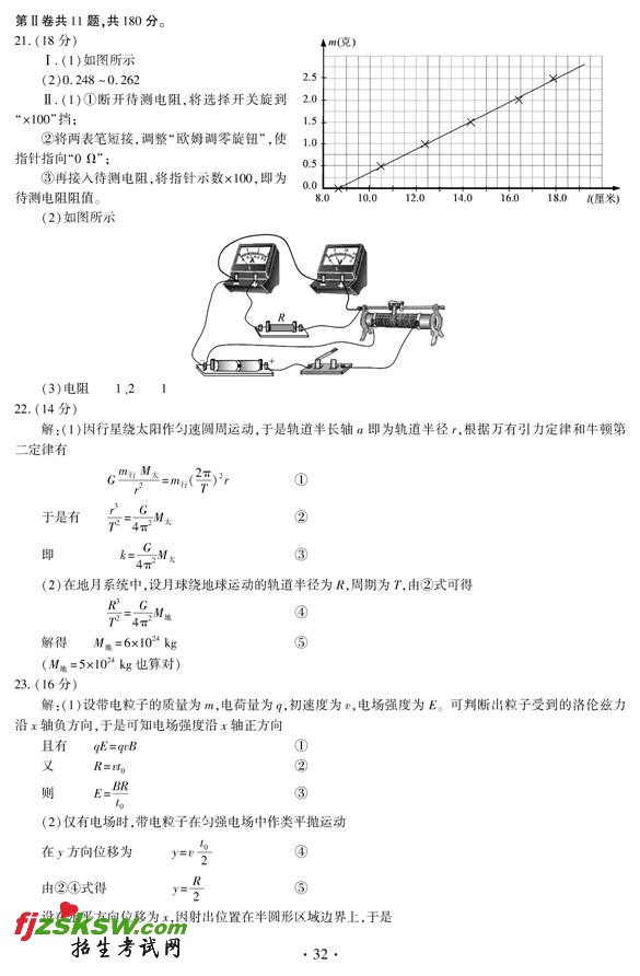 江西2011年高考理综试题参考答案