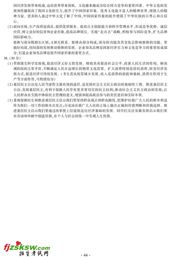 安徽2011年高考文科综试题答案