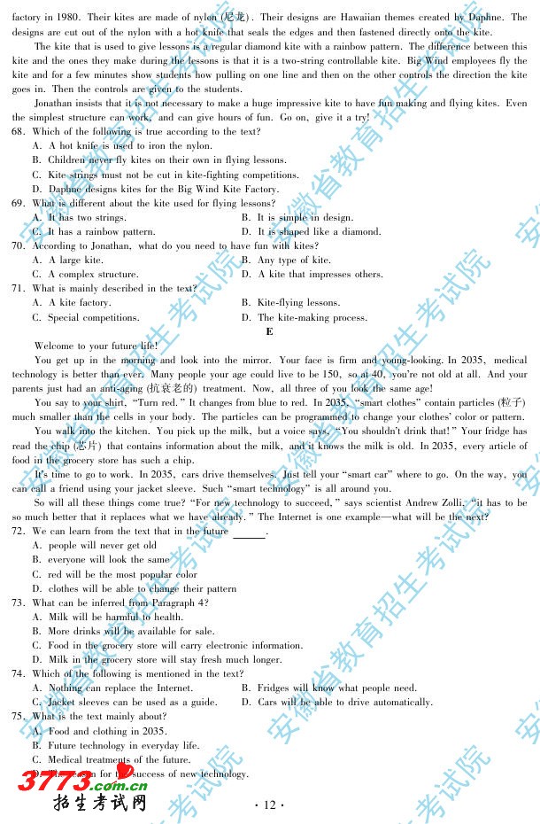 来源:安徽省教育招生考试院 2012-6-8 22:44:18