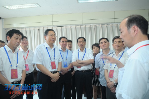在省考试考务指挥中心,李锦斌一行认真听取省教育厅网上评卷情况汇报,远程听取安徽师范大学评卷工作汇报,然后到安徽建筑大学评卷现场,亲切看望高温中紧张奋战的工作人员。他指出,高考招生承担着为实现“中国梦”奠定人才基础的重要职责,全社会高度关注,容不得丝毫懈怠和半点疏漏。评卷环节要统一标准,确保质量;严明纪律,确保安全;强化保障,确保服务到位。招生录取工作要坚持阳光操作,坚持规范运作,千方百计为考生和院校提供周到细致的服务,努力让考生满意,让家长满意,让社会满意。