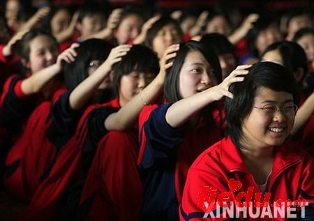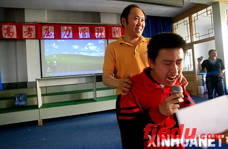 从5月28日起,一门旨在减轻考生压力的高考压力管理课程在北京北方交通大学附中开讲,150名高三毕业生参加了减压培训。北京市青少年法律与心理咨询服务中心的心理老师通过各种方法帮助考生缓解紧张情绪、调适心理,以更好的状态迎接高考。 新华社发