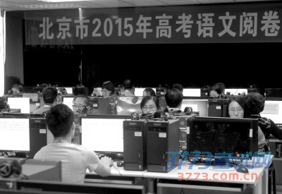 2015年北京高考阅卷工作已进程过半。昨天,北京大学高考阅卷点面向媒体开放。今年全市共需阅卷近22.8万份,设6个阅卷点。今年高考大作文首次实行“二选一”,选择写“深入灵魂的热爱”的考生占八成,目前已出现满分作文50余篇,预计满分作文总数将超过去年。