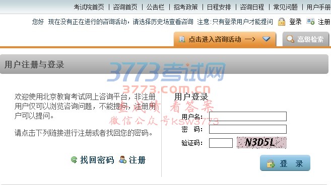 2017年北京市高招网上咨询活动将于2017年6月16日早8:00正式开放咨询系统,当日晚上18:00-21:00为院校网上答疑时间,系统现已开放用户注册!
