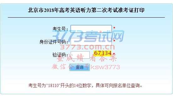 北京市2018年高考英语听力第二次考试准考证打印 北京教育考试院考生号: *身份证件号码: *验证码: *