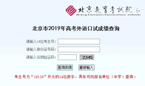 北京市2019年高考外语口试成绩查询