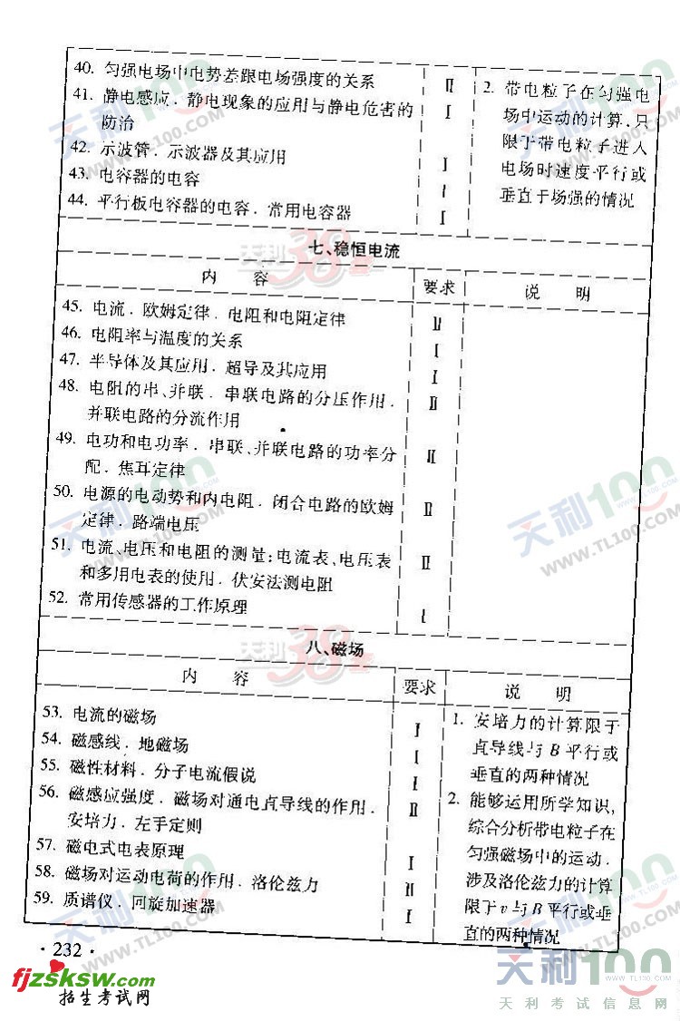 2011北京高考理综考试说明大纲