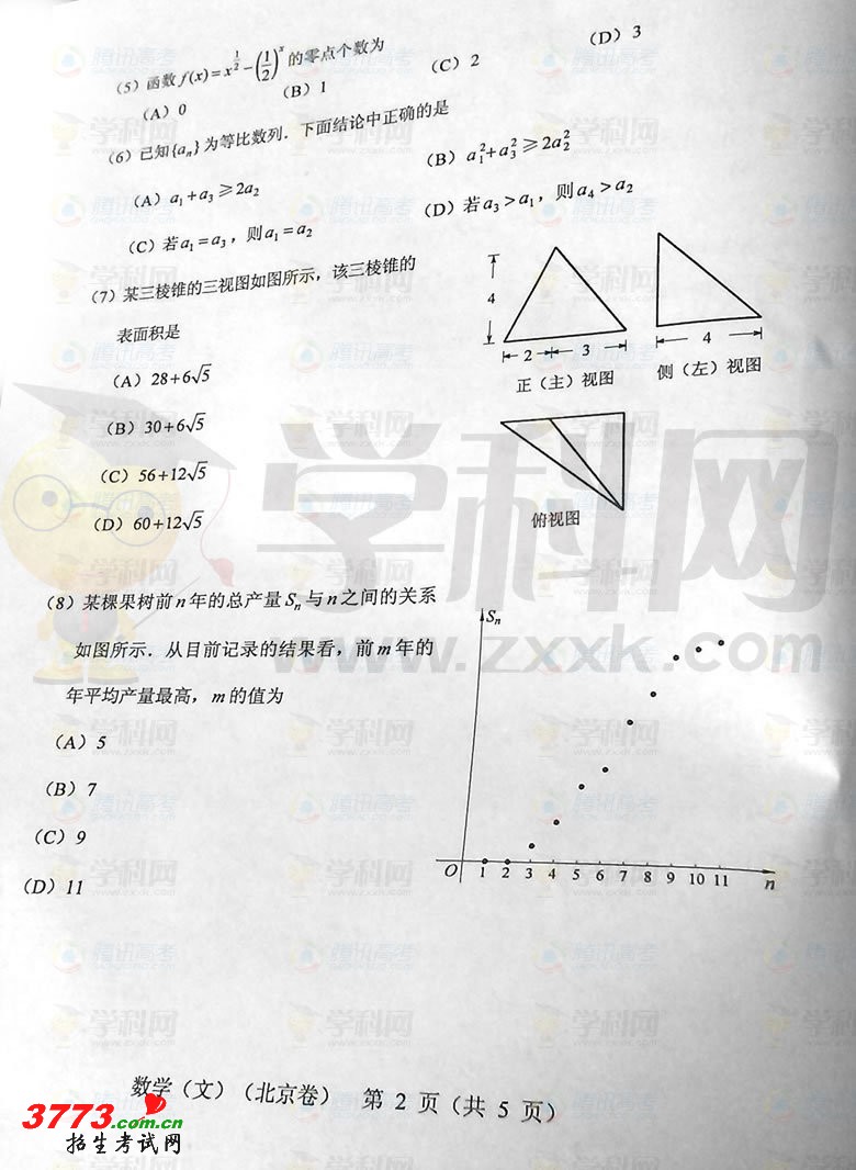 2012北京高考数学试题及答案