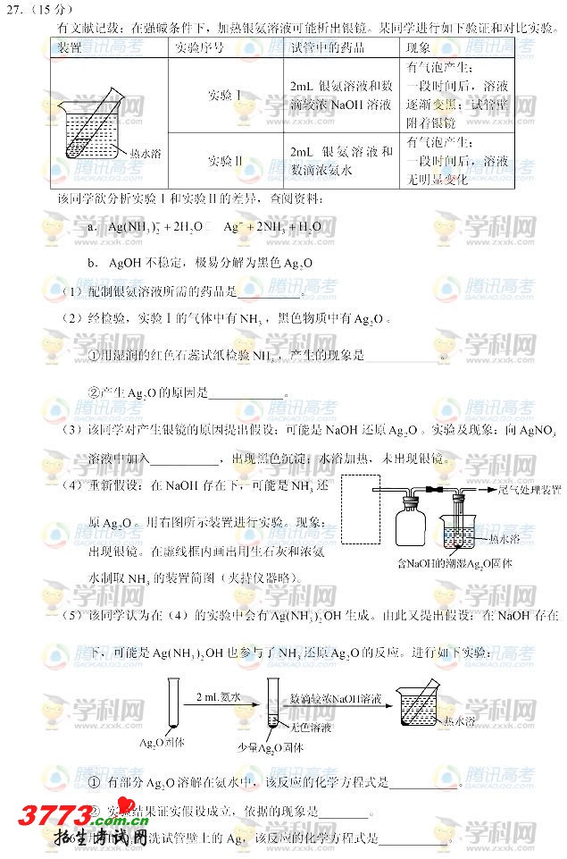 2012年北京高考理科综合理综试卷发布