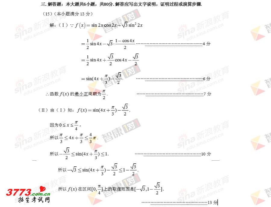北京市海淀区2012年高三上学期期中考试理科数学试卷答案