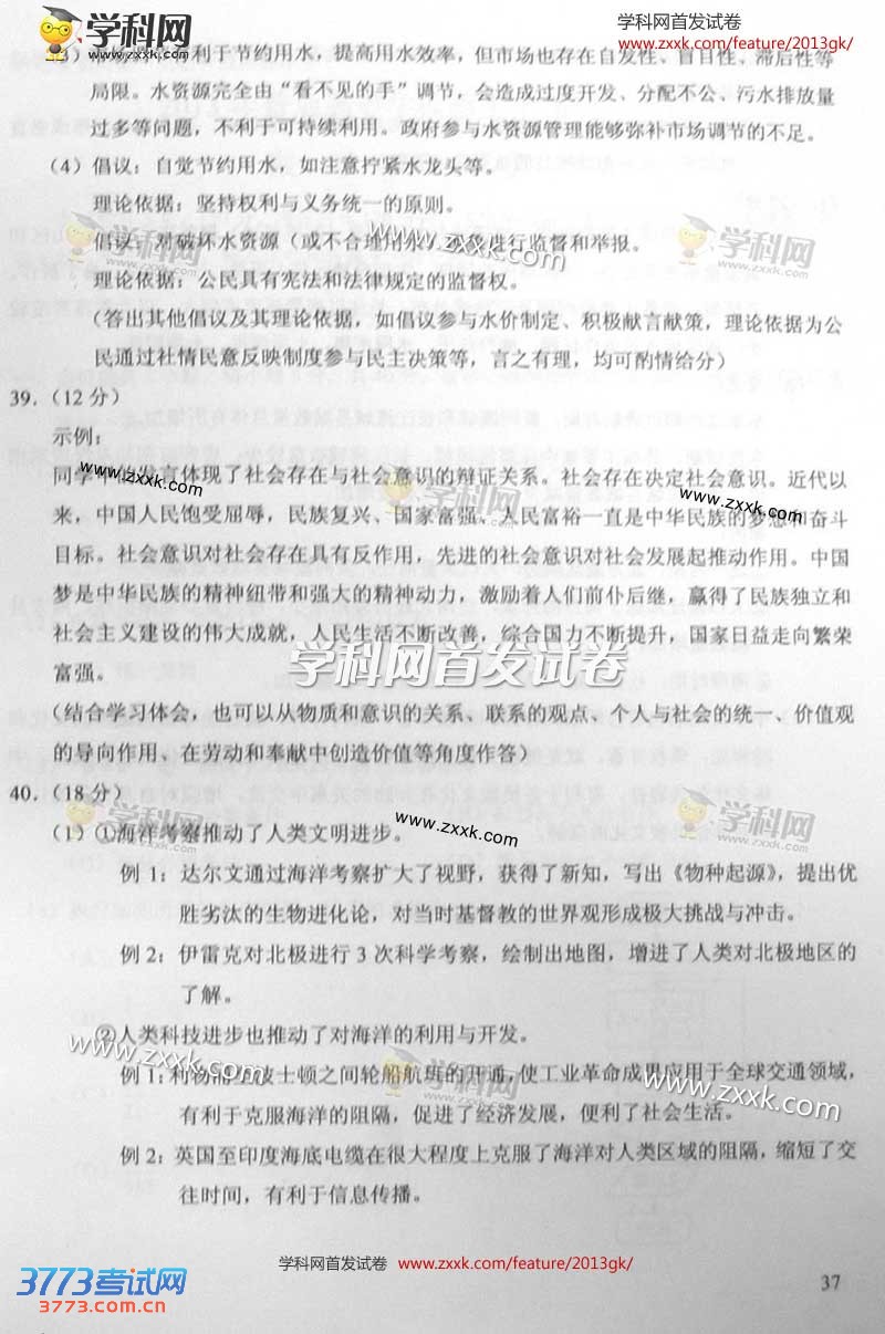 2013北京高考文综试题及答案