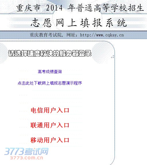 2014重庆高考网上志愿填报系统入口 http://www.cqzk.com.cn/www2014/index.html