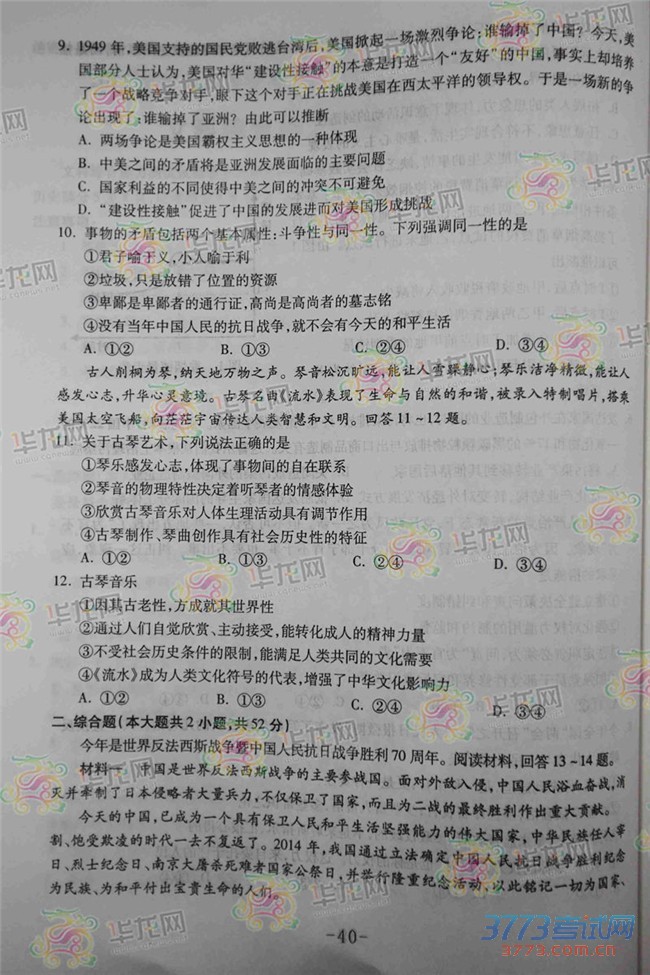 2015重庆高考文综试题及答案