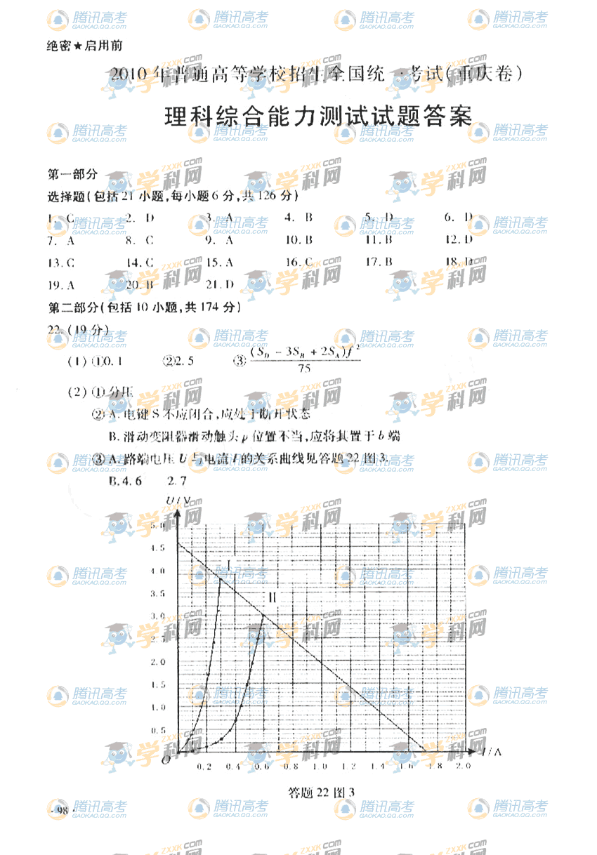 2010年7月25日重庆高考院校录取分数线(二本理科)