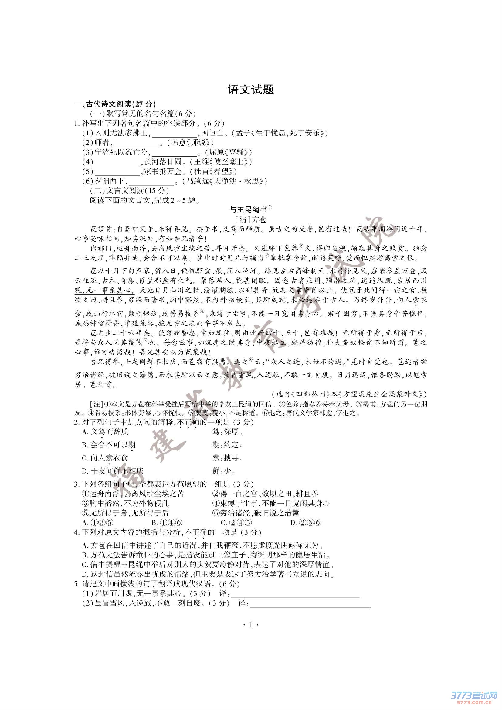 来源:3773高考