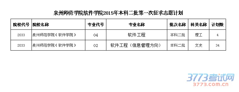 泉州师范学院软件学院2015年本科二批第一次征求志愿计划