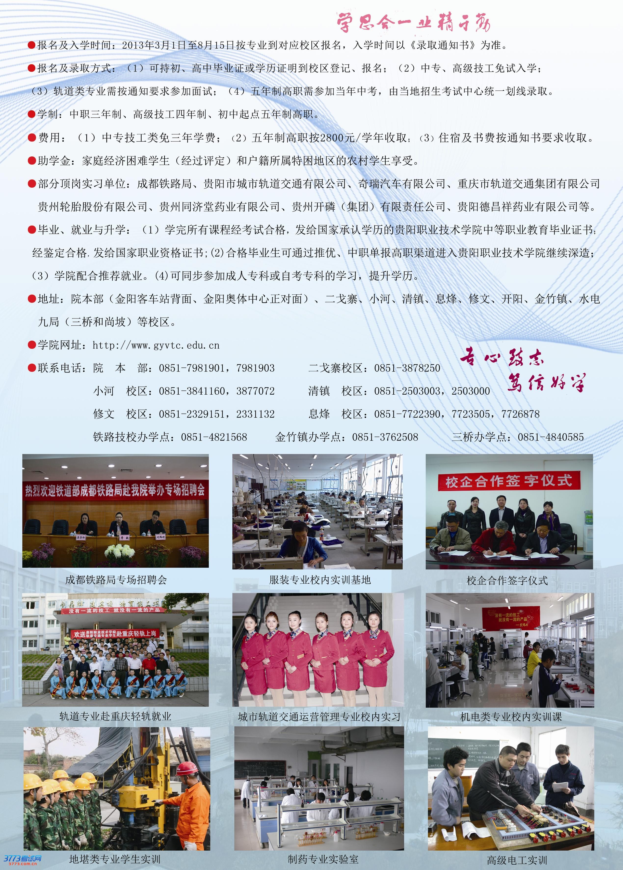 贵阳职业技术学院2013年中职五年制大专招生简章
